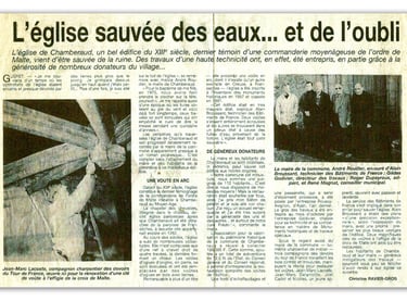 The church at Chamberaud, a fine 13th-century building and the last remaining vestige of a medieval commandery of the Order of Malta, has just been saved from falling into ruins. Highly technical restoration work has, in fact, been undertaken, partly thanks to the generosity of numerous donors from the commune…